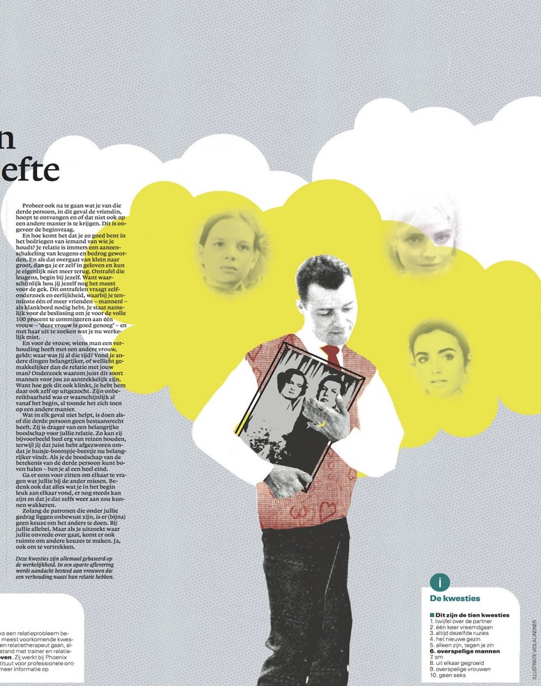 Een artikel uit een reeks over veel voorkomende relatieproblemen die Margot Pol en Wietske Jansen Schoonhoven schreven voor NRC en NRC.next. In dit artikel: wat doe je als je man een vriendin blijkt te hebben?